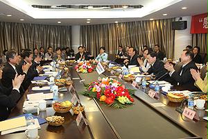 全體同志走進中材集團,召開“感受中材、做強做優”座談會,中材集團董事長譚仲明、天津礦山工程有限公司董事長張漢武分別介紹了企業生產經營情況和反腐倡廉工作,勞模代表、職工家屬代表作了感人至深的精彩發言。