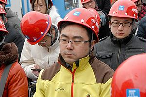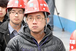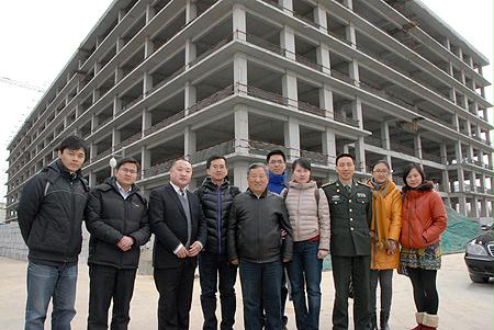 國資委機關青年志愿者與喬老在工地前合影
