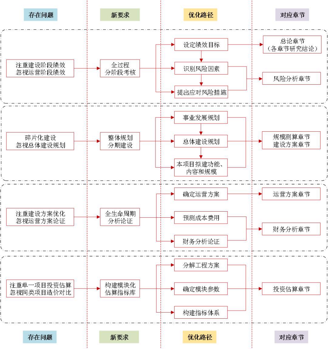 《政府投資條例》是我國深化投融資體制改革和“放管服”改革的重要成果,是我國政府投資領(lǐng)域的首部行政法規(guī)。針對以基本公共服務(wù)項目為代表的政府投資項目可行性研究突出存在的“碎片化”“階段化”“片面化”等問題,本文結(jié)合基本公共服務(wù)項目的特點,提出了高質(zhì)量開展可行性研究的優(yōu)化路徑,即在重視收集項目資料和現(xiàn)場踏勘工作的基礎(chǔ)上,重視績效考核指標(biāo)、總體建設(shè)規(guī)劃、全生命周期分析、模塊化估算指標(biāo)體系等內(nèi)容的論證。 一、基本公共服務(wù)項目的主要特點 基本公共服務(wù)是指由政府主導(dǎo)、保障全體公民生存和發(fā)展基本需要、與經(jīng)濟社會發(fā)展水平相適應(yīng)的公共服務(wù)。基本公共服務(wù)項目作為保障群眾切身利益和社會民主、公平、穩(wěn)定的基礎(chǔ)設(shè)施,具有維系社會公正、體現(xiàn)社會公益性的作用。 基本公共服務(wù)范圍,一般包括保障基本民生需求的教育、就業(yè)、社會保障、醫(yī)療衛(wèi)生、計劃生育、住房保障、文化體育等領(lǐng)域的公共服務(wù);廣義上,還包括與人民生活環(huán)境緊密關(guān)聯(lián)的交通、通信、公用設(shè)施、環(huán)境保護等領(lǐng)域的公共服務(wù),以及保障安全需要的公共安全、消費安全和國防安全等領(lǐng)域的公共服務(wù)。本文中的基本公共服務(wù)項目是指狹義基本公共服務(wù)領(lǐng)域內(nèi)的工程建設(shè)項目,具有項目公益性強、重點保基本需求、供給主體多元化、政府監(jiān)管力度大等特點。 (一)公益屬性顯著 基本公共服務(wù)項目的基本特征是公益性,具體表現(xiàn)在三個方面。其一,該類項目多為民生項目,以保障全體公民生存和發(fā)展的基本需求為目的,需要體現(xiàn)均等化、普惠化和便捷化;其二,該類項目具備較強的社會效益、生態(tài)效益,受益群體廣泛、外部效果顯著、可持續(xù)影響突出,對調(diào)整社會結(jié)構(gòu)、維護社會穩(wěn)定、促進經(jīng)濟社會協(xié)調(diào)健康發(fā)展有積極作用;其三,該類項目不以營利為目的,具有投資額度多、建設(shè)規(guī)模大、服務(wù)年限長、收益時間滯后、投資回報率低等特點,一般由政府“兜住底線”。 (二)重點保基本需求 基本公共服務(wù)項目的核心界定是保基本。其一,基本的范圍和內(nèi)容應(yīng)隨著當(dāng)?shù)亟?jīng)濟社會發(fā)展水平和階段的提高進行動態(tài)調(diào)整;其二,該類項目的決策、建設(shè)、管理、供給以及績效評價應(yīng)形成系統(tǒng)性、整體性和制度性;其三,該類項目的功能定位、建設(shè)標(biāo)準(zhǔn)、建設(shè)規(guī)模和資源配置應(yīng)嚴格遵循國家、行業(yè)和地方相關(guān)標(biāo)準(zhǔn)和規(guī)范,不得隨意擴大建設(shè)規(guī)模,提高建設(shè)標(biāo)準(zhǔn)。 (三)供給主體多元化 基本公共服務(wù)項目基于“公益性”和“保基本”兩大典型特征,原本屬于政府職責(zé)范圍,目前已初步構(gòu)建政府主導(dǎo)、社會參與、公辦民辦并舉的多元化建設(shè)模式。其一,政府直接投資的項目,應(yīng)做好財力保障,加快重大項目建設(shè)運營;其二,政府購買服務(wù)的項目,應(yīng)積極引導(dǎo)社會力量參與,推廣政府和社會資本合作(PPP)模式。 (四)政府監(jiān)管力度大 基本公共服務(wù)項目一般為政府投資項目,既直接關(guān)系公共利益,又是政府履行職能的主要方式,必須加強全過程監(jiān)管。其一,決策階段政府需審批項目建議書、可行性研究報告、初步設(shè)計概算和招標(biāo)方案;其二,實施階段項目單位需如實報送政府投資項目開工建設(shè)、建設(shè)進度、竣工驗收等基本信息,政府需采取在線監(jiān)測、現(xiàn)場核查等監(jiān)管方式,并在項目竣工后審查決算報告;其三,全面實施預(yù)算績效管理,對實施期超過一年的重大項目實行全周期跟蹤問效,建立動態(tài)評價調(diào)整機制。 二、新時期高質(zhì)量開展可行性研究的新要求 近年來,我國在投融資管理方面出臺了《政府投資條例》《企業(yè)投資項目核準(zhǔn)和備案管理條例》《中共中央 國務(wù)院關(guān)于深化投融資體制改革的意見》《項目支出績效評價管理辦法》《全國投資項目在線審批監(jiān)管平臺運行管理暫行辦法》等一系列政策法規(guī),對基本公共服務(wù)項目高質(zhì)量開展可行性研究提出了新要求。 (一)由碎片化建設(shè)轉(zhuǎn)向整體規(guī)劃、分期建設(shè) 基本公共服務(wù)項目普遍不注重對社會需求的調(diào)查研究,對項目功能定位和建設(shè)規(guī)劃研究不足,未能統(tǒng)籌考慮近期建設(shè)和遠期發(fā)展需求,還停留在簡單、盲目的碎片化建設(shè)層面,致使“建好即落后”“建好即改造”“建成不利用”等問題層出不窮,影響基本公共服務(wù)功能的有效發(fā)揮,導(dǎo)致服務(wù)質(zhì)量和效率下降。 因此,首先該類項目行政主管部門應(yīng)根據(jù)本領(lǐng)域基本公共服務(wù)和空間布局現(xiàn)狀以及未來發(fā)展需求編制行業(yè)發(fā)展規(guī)劃,明確發(fā)展目標(biāo)、空間布局及重大項目等,為項目實施提供行業(yè)規(guī)劃依據(jù);其次,該類項目的可行性研究要以本領(lǐng)域行業(yè)發(fā)展規(guī)劃