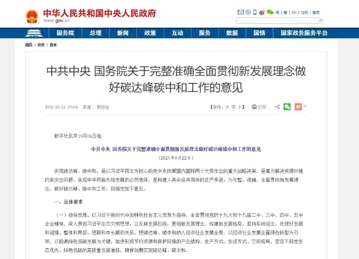 中央關于碳達峰碳中和文件的看點