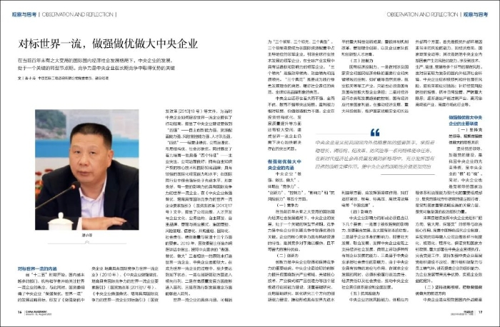 導讀 在當前百年未有之大變局的國際國內(nèi)經(jīng)濟社會發(fā)展格局下,中央企業(yè)的發(fā)展,處于一個關(guān)鍵的轉(zhuǎn)型節(jié)點期。競爭力是中央企業(yè)在長期競爭中取得優(yōu)勢的關(guān)鍵。 ●對標世界一流的內(nèi)涵 ●做強做優(yōu)做大中央企業(yè)的內(nèi)涵 ●做強做優(yōu)做大中央企業(yè)的主要舉措 對標世界一流的內(nèi)涵 自“十二五”時期開始,國內(nèi)越來越多的部門、機構(gòu)和學者開始關(guān)注世界一流企業(yè)的概念。與此同時,國資委明確了中央企業(yè)“做強做優(yōu),世界一流”的發(fā)展戰(zhàn)略目標,印發(fā)了《做強做優(yōu)中央企業(yè) 培育具有國際競爭力世界一流企業(yè)》(2010年)、《中央企業(yè)做強做優(yōu)、培育具有國際競爭力的世界一流企業(yè)要素指引》(國資發(fā)改革[2013]17號)、《中央企業(yè)做強做優(yōu)、培育具有國際競爭力的世界一流企業(yè)對標指引》(國資發(fā)改革[2013]18號)等文件,為當時中央企業(yè)如何建設(shè)世界一流企業(yè)提供了行動指南,提出了中央企業(yè)建設(shè)要做到“四強”——自主創(chuàng)新能力強、資源配置能力強、風險管控能力強、人才隊伍強,“四優(yōu)”——經(jīng)營業(yè)績優(yōu)、公司治理優(yōu)、布局結(jié)構(gòu)優(yōu)、社會形象優(yōu)。同時提出了著力培育一批具備“四個特征”——主業(yè)突出,公司治理良好;擁有自主知識產(chǎn)權(quán)的核心技術(shù)和國際知名品牌;具有較強的國際化經(jīng)營能力和水平;在國際同行業(yè)中綜合指標處于先進水平,形象良好,有一定的影響力的具有國際競爭力的世界一流企業(yè)。在《中央企業(yè)做強做優(yōu)、培育具有國際競爭力的世界一流企業(yè)要素指引》(國資發(fā)改革[2013]17號)文中,提出了公司治理、人才開發(fā)與企業(yè)文化、業(yè)務(wù)結(jié)構(gòu)、自主研發(fā)、自主品牌、管理與商業(yè)模式、集團管控、風險管理、信息化、并購重組、國際化、社會責任、績效衡量與管理十三個方面的要素。2019年,國資委副主任翁杰明在講話中指出,按照中央要求的“做強、做優(yōu)、做大”三者相統(tǒng)一的原則來打造世界一流企業(yè),中央企業(yè)差距較大。在成為世界一流企業(yè)的過程中,至少要達到如下狀態(tài),一是在創(chuàng)新驅(qū)動方面進入領(lǐng)先行列,二是在高質(zhì)量發(fā)展方面能夠進入前列,三是在踐行新發(fā)展理念方面能夠進入前列。 世界一流企業(yè)的具體內(nèi)涵,可概括為“三個領(lǐng)軍、三個領(lǐng)先、三個典型”。三個領(lǐng)軍是要成為在國際資源配置中占主導地位的領(lǐng)軍企業(yè),引領(lǐng)全球行業(yè)技術(shù)發(fā)展的領(lǐng)軍企業(yè),在全球產(chǎn)業(yè)發(fā)展中具有話語權(quán)和影響力的領(lǐng)軍企業(yè)。“三個領(lǐng)先”是指效率領(lǐng)先、效益領(lǐng)先和品質(zhì)領(lǐng)先。“三個典范”是要成為踐行綠色發(fā)展理念的典范、履行社會責任的典范、全球知名品牌形象的典范。 中央企業(yè)還存在著大而不強、全而不優(yōu)、散而不強等突出短板。盈利能力相對較弱、價值創(chuàng)造能力不強,企業(yè)在投資結(jié)構(gòu)優(yōu)化、發(fā)展質(zhì)量提升等方面還有較大空間,建成世界一流企業(yè)仍需下決心加快解決存在的突出問題。 做強做優(yōu)做大中央企業(yè)的內(nèi)涵 中央企業(yè)“做強、做優(yōu)、做大”,體現(xiàn)在“競爭力”,“創(chuàng)新力”,“控制力”,“影響力”和“抗風險能力”等五個方面。 (一)競爭力 在當前百年未有之大變局的國際國內(nèi)經(jīng)濟社會發(fā)展格局下,中央企業(yè)的發(fā)展,處于一個關(guān)鍵的轉(zhuǎn)型節(jié)點期。競爭力是中央企業(yè)在長期競爭中取得優(yōu)勢的關(guān)鍵。企業(yè)的核心競爭力具有稀缺資源的特性,是其競爭對手難以模仿,且不可替代的獨特優(yōu)勢。 (二)創(chuàng)新力 創(chuàng)新力是中央企業(yè)取得和保持競爭力的重要砝碼。中央企業(yè)最迫切的創(chuàng)新力提升應(yīng)圍繞新興產(chǎn)業(yè)領(lǐng)域、關(guān)鍵核心技術(shù)、產(chǎn)業(yè)模式和產(chǎn)品創(chuàng)造力等四個層級進行創(chuàng)新能力建設(shè),注重基礎(chǔ)研究、應(yīng)用基礎(chǔ)研究、轉(zhuǎn)化研究三個方向的創(chuàng)新能力建設(shè),推動形成具有世界先進水平的重大科技創(chuàng)新成果;重視體制機制改革、管理理念創(chuàng)新,以及企業(yè)家隊伍和創(chuàng)新型人才培育。 (三)控制力 國有經(jīng)濟控制力,一是在對涉及國家安全和國民經(jīng)濟命脈的重要行業(yè)和關(guān)鍵領(lǐng)域的控制,如礦藏等自然資源,航空航天等軍工產(chǎn)業(yè),只能也必須由國有及國有控股大型企業(yè)承擔;二是對經(jīng)濟運行態(tài)勢和發(fā)展趨勢的控制,國有經(jīng)濟應(yīng)代表國家利益。在推動經(jīng)濟發(fā)展、重大科技創(chuàng)新,維護國家戰(zhàn)略安全和長遠利益等方面,應(yīng)發(fā)揮頂梁柱作用,如打造好高鐵、核電、特高壓、高效清潔煤電等“中國名牌”。 (四)影響力 中央企業(yè)影響力的形成必須包含以下幾個要素:一是基于股權(quán)控制的影響力,即要融合發(fā)展,放大國有資本的功能