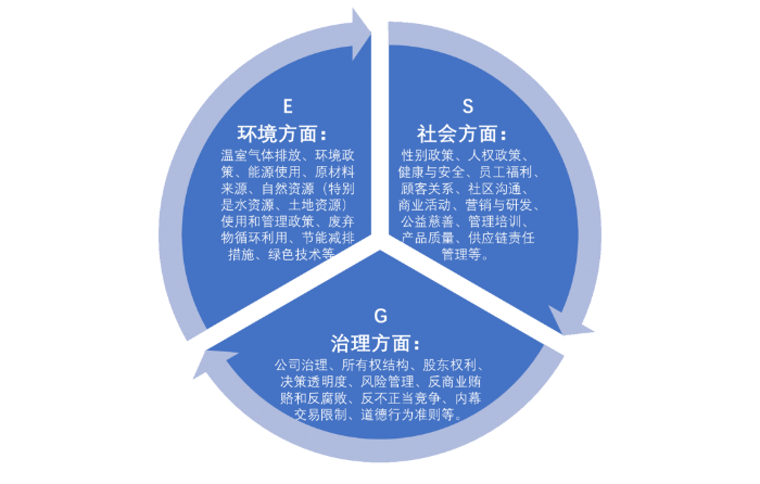 ESG是英文Environmental(環(huán)境)、Social(社會)和Governance(治理)的縮寫,是一種關(guān)注企業(yè)環(huán)境、社會、治理績效而非財(cái)務(wù)績效的投資理念和企業(yè)評價(jià)標(biāo)準(zhǔn)。基于ESG評價(jià),投資者可以評估其投資行為和企業(yè)(投資對象)在促進(jìn)經(jīng)濟(jì)可持續(xù)發(fā)展、履行社會責(zé)任等方面的貢獻(xiàn)。