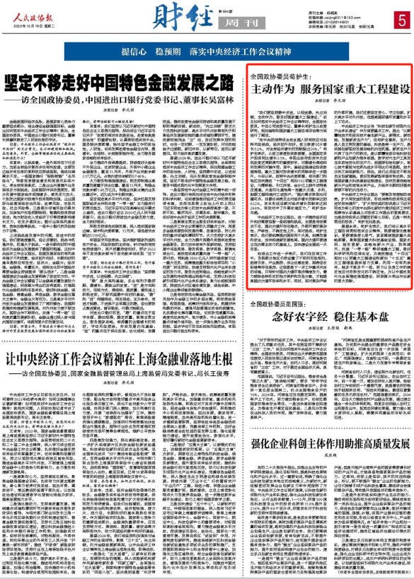 △全國政協委員,中咨公司黨委書記、董事長茍護生 “黨中央團結帶領全黨全國人民有效應對各種風險挑戰,經濟回升向好,前三季度GDP增長5.2%,對全球經濟增長的貢獻超過30%。”茍護生表示,從前三季度投資數據看,全國固定資產投資同比增長3.1%,體現出政府投資作為宏觀政策逆周期調節的重要抓手,對穩增長調結構所發揮的關鍵作用。其中,基礎設施建設投資數據亮眼,重大工程對投資增長的貢獻率進一步提升。今年以來,按照中央決策部署,有關部門和地區加快推進“十四五”規劃102項重大工程建設,川藏鐵路、引江濟淮、金沙江上游外送特高壓通道、大型石化基地等一批重大交通、水利、能源工程相繼開工或投產。“國內需求表現也可圈可點。如最終消費支出對經濟增長貢獻率達到83.2%,資本形成總額對經濟增長貢獻率達到29.8%,有效對沖了外需收縮壓力。”茍護生補充道。 中央經濟工作會議指出,進一步推動經濟回升向好需要克服一些困難和挑戰,主要是有效需求不足,國內大循環存在堵點,外部環境的復雜性、嚴峻性、不確定性上升。面對挑戰,茍護生表示,我們要統籌國內國際兩個大局,統籌發展和安全,加快構建新發展格局。國內大循環要建立在內需主動力的基礎上,加快建設全國統一大市場。 他結合工作進一步表示,我們在咨詢工作中,發現部分地區仍然設置了不同的市場規則,招商引資、產業激勵、涉企優惠政策、稅費征收標準等存在差異。這些都是下一步工作重點關注的領域,只有針對國內大循環堵點精準發力,著力破除各種形式的地方保護和市場分割,才能提高國內大循環效率和水平。同時,面對復雜嚴峻的外部環境,我們還要堅定信心、守正創新,擴大高水平對外開放,在提高國際循環質量和水平上下功夫。 中央經濟工作會議將“科技創新引領現代化產業體系建設”作為首要重點工作,提出“以顛覆性技術和前沿技術催生新產業、新模式、新動能,發展新質生產力”。在茍護生看來,生產力是人類文明發展的基礎,科技是第一生產力,是實施創新驅動發展戰略的內在機理。新質生產力代表了生產力的躍遷,是以顛覆性前沿性科技創新和產業創新為根本前提,數字時代生產工具發生本質性變化的生產力。我國原創性創新少,核心技術掌控與世界先進水平相比仍有差距,技術交流又面臨新阻力。因此,我們必須堅定不移走自主創新道路,更好發揮新型舉國體制優勢,加強國家重大科技基礎設施建設,加快發展戰略性新興產業和培育未來產業,為經濟長期向好提供源源不斷的內在動力。 中央經濟工作會議提出“要激發有潛能的消費,擴大有效益的投資,形成消費和投資相互促進的良性循環”?!皵U大有效益的投資是以習近平同志為核心的黨中央深化新時代做好經濟工作的規律性認識基礎上對投資工作提出的更高要求,也是政府投資必須錨定的核心目標,這是一種負責任的投資。”茍護生如是說。 展望未來,茍護生表示,我們將以高水平工程咨詢貫徹落實會議精神,既要增強憂患意識,更要增強信心底氣,緊緊圍繞國家重大戰略部署,聚焦國家重大科技基礎設施、國家水網、城市更新、戰略性新興產業、防洪減災、共建“一帶一路”等領域重大工程,做好科學研究和咨詢論證,為高效推進“十四五”規劃102項重大工程建設和謀劃“十五五”重大工程儲備提供智力支撐,利用一切有利條件,能多干就多干一些,努力以自身工作的確定性應對形勢變化的不確定性,為以中國式現代化全面推進強國建設、民族復興偉業作出新的更大貢獻。 | |||||