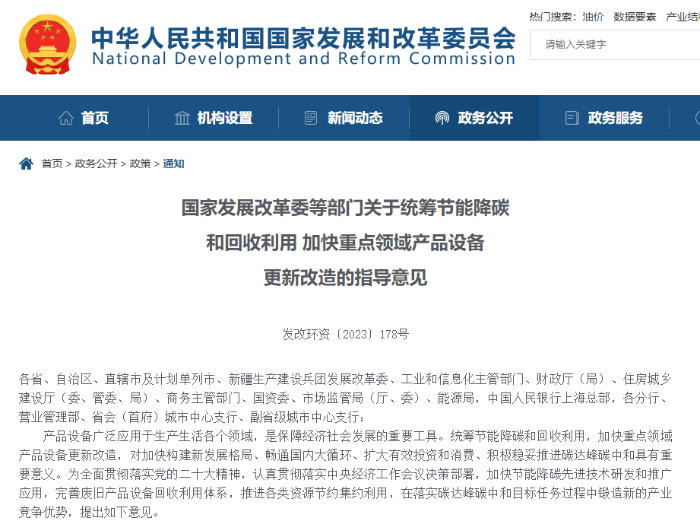 堅持系統觀念 著力精準施策 加快完善廢舊產品設備回收利用體系 ——《關于統籌節能降碳和回收利用 加快重點領域產品設備更新改造的指導意見》解讀 朱黎陽 完善廢舊產品設備回收利用體系,是貫徹落實黨的二十大報告關于“實施全面節約戰略,推進各類資源節約集約利用,加快構建廢棄物循環利用體系”的重要舉措。近日,國家發展改革委會同有關部門印發了《關于統籌節能降碳和回收利用 加快重點領域產品設備更新改造的指導意見》(發改環資〔2023〕178號,以下簡稱《指導意見》),明確了統籌推進產品設備更新改造和回收利用的目標任務、政策措施和實施指南,是指導各地區和有關行業企業做好相關工作的重要文件。 01 堅持系統施策,破解回收難題 當前,我國正處在工業化和城鎮化深化發展的關鍵階段,將迎來新一輪產品設備更新升級高峰。隨著一批高性能、高效率、高質量新產品投用,與之相應將有一批產品設備陸續退役。回收利用是產品設備全生命周期中的重要一環,規范回收是實現各類廢舊產品設備“物盡其用”的必要前提。如何實現成批廢舊產品設備的循環利用是擺在各方面前的現實問題。 《指導意見》堅持系統觀念,順應產業發展趨勢和特點,精準把握產業發展需求,以“規范化、規模化、精細化”為導向,結合產品設備更新潛力、廢舊設備利用途徑等,從產品設備更新改造到回收、拆解、利用等各個環節,系統性提出完善回收利用體系的細化要求,強化資金、政策、標準、技術、監管等全方位支撐保障,具有較強的指導性和可操作性。加快完善廢舊產品設備回收利用體系,補齊廢舊產品設備循環利用產業鏈短板,對提升廢棄物循環利用水平和協同推進降碳、減污、擴綠、增長具有重要意義。 02 堅持依法依規,強化規范回收 “規范化”是完善廢舊產品設備回收利用的第一優先導向。《指導意見》強調,要尊重客觀規律,堅守安全底線,堅持依法依規,規范開展廢舊產品設備回收處置,并細化提出相關要求。 一是規范處置國有資產。要落實國務院國資委《關于企業國有資產交易流轉有關事項的通知》要求,完善國有廢舊產品設備資產處置制度,推動企業高效、規范處置相關資產。二是規范開展回收經營活動。相關企業要按照《再生資源回收管理辦法》有關要求,進行再生資源回收經營者備案等。三是依法依規開展報廢處置。相關主體應嚴格落實法律法規和標準要求,規范處置屬于強制淘汰、存在嚴重事故隱患、無改造維修價值的報廢產品設備,杜絕通過二手交易等方式重新流入市場。四是嚴格遵守生態環境保護相關法律法規和標準要求。比如,涉及處置含油變壓器的,應有廢油回收儲存設備和相關處理措施;從事制冷劑回收利用等經營活動的,應嚴格落實《消耗臭氧層物質管理條例》有關要求;從事屬于危險廢物的含汞廢舊照明設備回收利用經營活動的,應具有危險廢物經營許可證等。 03 堅持多方聯動,力爭應收盡收 退役產品設備的型號多、數量大、分布廣,涉及各地區、各行業、各領域。以往在實踐中,一些退役產品設備存在規范回收利用比例較低、長期閑置、進入不規范拆解處置渠道等問題。為統籌推進產品設備更新改造和回收利用,《指導意見》堅持問題導向,精準施策,有針對性地提出了實現“規模化”回收的若干舉措。 一是加強信息共享。要求各地按照市場化法治化原則,組織開展廢舊產品設備回收處置供需對接,打破回收利用的信息壁壘。二是探索新型回收模式。支持發展廢舊產品設備回收、運輸、拆解、利用一體化模式。同時發揮制度和體制優勢,支持供銷社系統探索廢舊產品設備回收利用的先進模式。三是開展機制創新。在家用電器領域實施“生產企業回收目標責任制”,鼓勵各地建立“資源循環利用重點企業聯系制度”。這些新舉措的提出和實施,將有助于解決長期制約廢舊產品設備規范回收利用的堵點和難點。 04 堅持多措并舉,推動精細回收 相對于其他廢棄物,廢舊產品設備殘值較高,利用途徑多元。《指導意見》強調要堅持節約集約,堅持以“精細化”為重要導向,完善廢舊產品設備回收利用體系。 一是供需對接的精細化。鼓勵各級公共資源交易平臺開設專欄、開辟綠色通道,暢通廢舊產品設備資產交易,支持發展“互聯網+”模式,培育廢舊產品設備線上交易平臺,通過信息技術的廣泛應用,實現點對點的精細回收。二是拆解處理的精細化。要求推廣廢舊產品設備精細拆解、復合材料高效解離等技術。三是政策指導的精細化。《指導意見》對鍋爐、電機、電力變壓器、制冷、照明、家用電器等六類重點產品設備分別制定了“更新改造和回收利用實施指南”,做到了“一品一策、精準施策”。 2023年是貫徹黨的二十大精神的開局之年,是實施“十四五”規劃承前啟后的關鍵一年。《指導意見》堅持系統觀念,統籌推進產品設備更新改造和回收利用,以六個重點產品為突破口,抓住了廢棄物的重點品種,通過小切口作出大文章。《指導意見》的出臺實施,將為統籌推進節能降碳和回收利用,加強各類資源節約集約循環利用,推動經濟社會發展全面綠色轉型作出積極貢獻。 注:原文載自國家發展改革委微信客戶端。 | |||||