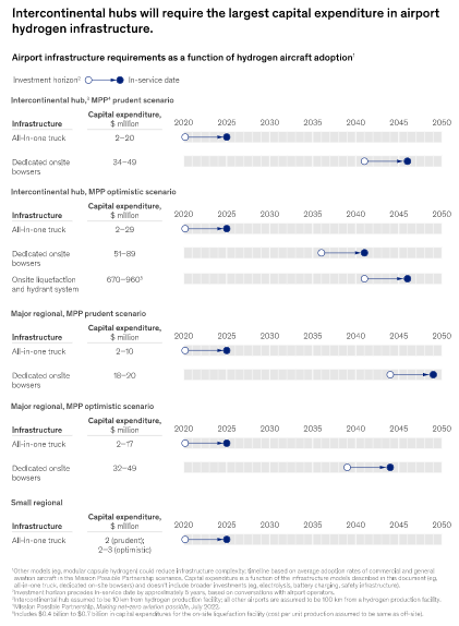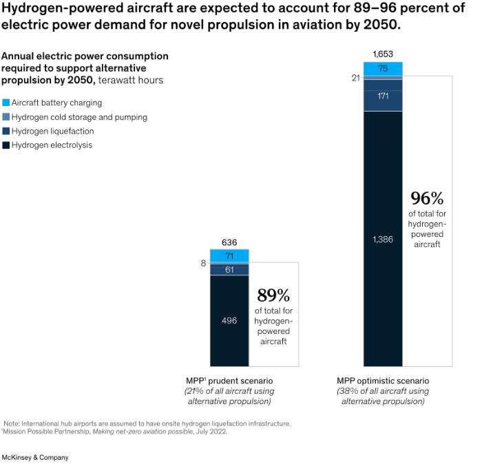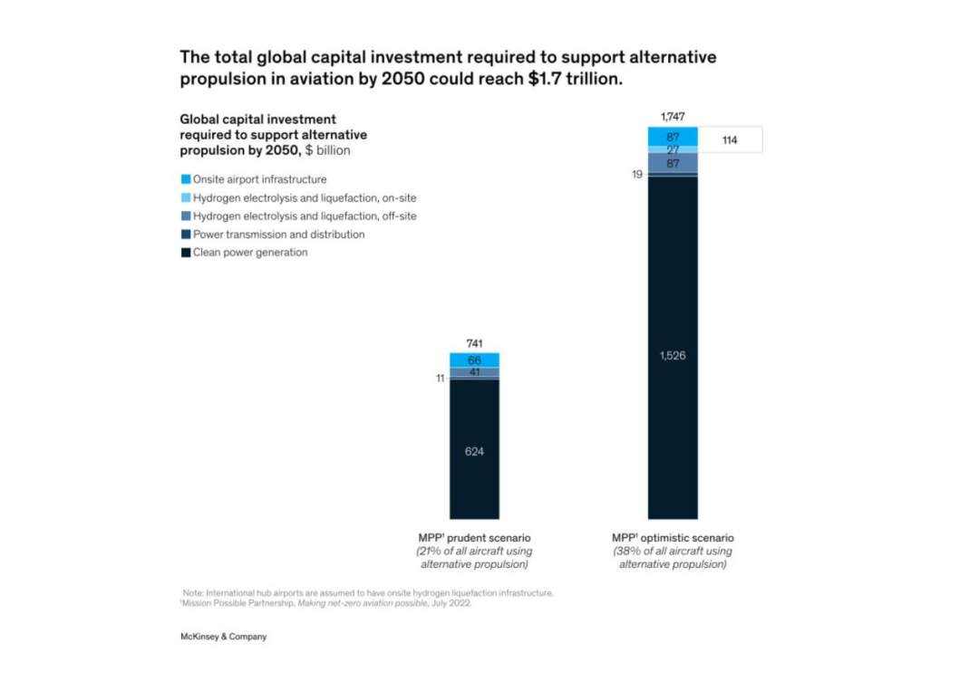 隨著對(duì)解決航空業(yè)氣候影響的解決方案的尋求變得更加迫切,人們對(duì)例如氫氣、電池電力和混合電力驅(qū)動(dòng)飛機(jī)等新型推進(jìn)技術(shù)產(chǎn)生了極大的興趣。根據(jù)MPP對(duì)航空業(yè)能源的估計(jì),到2050年,電池電力和氫動(dòng)力飛機(jī)可能占所有飛機(jī)的21%-38%,占該行業(yè)整體能源需求的15%-34%。雖然時(shí)間上可能感覺很遙遠(yuǎn),但這一新技術(shù)將在這十年內(nèi)出現(xiàn)。 針對(duì)這些基礎(chǔ)設(shè)施的變化,以及機(jī)場(chǎng)和其他利益相關(guān)方如何開始準(zhǔn)備,仍存在不確定性。近期,麥肯錫發(fā)布了《瞄準(zhǔn)低碳:為電池和氫動(dòng)力飛機(jī)提供基礎(chǔ)設(shè)施》的報(bào)告,旨在幫助人們了解影響新型推進(jìn)器的一些關(guān)鍵考慮因素。