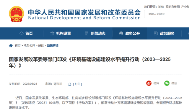 ——《環境基礎設施建設水平提升行動(2023—2025年)》解讀