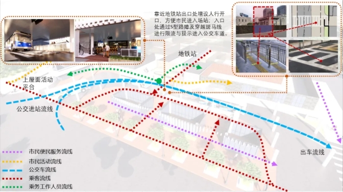 TOR模式驅(qū)動(dòng)的首都核心功能區(qū) 公交場(chǎng)站提質(zhì)更新探索 楊曦 商祥波 彭翔 摘要:公交場(chǎng)站是城市公共交通的末梢神經(jīng),在城市公共出行與服務(wù)方面持續(xù)發(fā)揮重要作用。文章針對(duì)首都功能核心區(qū)內(nèi)公交場(chǎng)站提質(zhì)更新的內(nèi)在需求,通過兩處TOR模式驅(qū)動(dòng)下試點(diǎn)公交場(chǎng)站的更新方案作為具體案例,試圖從城市形象及公共空間等方面為功能核心區(qū)內(nèi)公共交通設(shè)施的更新活動(dòng)提供新的模式和思路。 關(guān)鍵詞:TOR模式;首都核心功能區(qū);公交場(chǎng)站;更新 一、引言 公共交通場(chǎng)站用地作為城市規(guī)劃用地分類中的專門類型,承擔(dān)著城市公共基礎(chǔ)設(shè)施和公共交通的末梢神經(jīng)的職能。公交場(chǎng)站的建設(shè)內(nèi)容既包含公交車輛的出入調(diào)度、司乘員工的工作休息等內(nèi)部功能,也包含社會(huì)乘客候車落客的外部需求。功能需求的二元性,使公交場(chǎng)站具有落客區(qū)半開放、內(nèi)部運(yùn)轉(zhuǎn)區(qū)半封閉的的空間屬性。 2020年8月,中共中央、國務(wù)院正式批復(fù)《首都功能核心區(qū)控制性詳細(xì)規(guī)劃(街區(qū)層面)(2018年—2035年)》(以下簡稱《控規(guī)》),92.5k㎡的北京東西城,正式定義為“首都功能核心區(qū)”。《控規(guī)》作為首都功能核心區(qū)控制性詳細(xì)規(guī)劃,不僅明確了首都核心功能區(qū)的戰(zhàn)略定位,也充分注重整體與歷史文化街區(qū)的保護(hù),以推動(dòng)老城的復(fù)興;《控規(guī)》還要求構(gòu)建優(yōu)質(zhì)均衡的公共服務(wù)體系,提升人居環(huán)境質(zhì)量,促進(jìn)首都的可持續(xù)發(fā)展。首都功能核心區(qū)內(nèi)現(xiàn)有公交場(chǎng)站七十余處,伴隨近代北京城市公交百余年的發(fā)展,這批已有數(shù)十載歷史的公交場(chǎng)站,在維持首都核心功能區(qū)日常公共交通運(yùn)轉(zhuǎn)上發(fā)揮著重要作用。它們既是北京公共交通事業(yè)發(fā)展歷程的親歷者,也是北京公共交通體系最重要的有形固定資產(chǎn)之一。 圖1 首都核心功能區(qū)公交場(chǎng)站布局規(guī)劃 通過實(shí)地調(diào)研首都核心功能區(qū)部分既有場(chǎng)站發(fā)現(xiàn),各場(chǎng)站均出現(xiàn)不同程度的老舊化與破損。更新維護(hù)模式,以定期墻和地面的常規(guī)粉刷、替換老舊裝飾材料及物業(yè)設(shè)備等的日常性維修改善為主,大多聚焦維持現(xiàn)狀使用功能。導(dǎo)致了部分場(chǎng)站逐漸與周邊核心功能區(qū)的形象風(fēng)貌與服務(wù)功能產(chǎn)生了距離。對(duì)存量公交場(chǎng)站實(shí)施提質(zhì)更新,既是《控規(guī)》中對(duì)于核心功能區(qū)場(chǎng)站轉(zhuǎn)型與升級(jí)的需要,也是留住場(chǎng)站、凝聚人氣,延續(xù)北京公交場(chǎng)所記憶的必要措施。 隨著城市化率的提高,激發(fā)城市的內(nèi)在活力、促進(jìn)城市可持續(xù)發(fā)展,成為世界上步入高城市化率國家共同面臨的問題。而首都行政區(qū)多為各國優(yōu)先考慮的地區(qū),許多國家都通過加大首都舊有街區(qū)內(nèi)的城市公共交通設(shè)施更新投入的方法,達(dá)到激發(fā)公交系統(tǒng)所覆蓋街區(qū)城市活力的目的。發(fā)達(dá)國家為我們提供了一些公共交通場(chǎng)站更新的成功案例。 例如,城市公共交通系統(tǒng)發(fā)源地英國倫敦,提出了城市公共交通Crossrail 1計(jì)劃,持續(xù)三十多年,2022年終于完工。該工程串聯(lián)起橫貫城市東西的多處車站,以交通樞紐為核心,對(duì)公共空間進(jìn)行綜合、持續(xù)的更新活動(dòng)。每個(gè)車站的改造都非常重視從當(dāng)?shù)貧v史環(huán)境中吸取靈感來賦予車站以特色。更新改造后的車站也是推動(dòng)倫敦帕丁頓、利物浦街、法靈頓等地區(qū)等復(fù)興計(jì)劃的關(guān)鍵力量[1]。 日本東京秋葉原地區(qū)有著百年歷史的萬世橋車站,歷經(jīng)地震、東京城市交通線路升級(jí)而被廢棄。通過整體系統(tǒng)性規(guī)劃,車站被定位為摩登又復(fù)古的創(chuàng)意生活街區(qū),2000㎡的原場(chǎng)站成為了潮流聚集地及熱門打卡圣地,盤活了整個(gè)地區(qū)。實(shí)現(xiàn)了從“昔日東京門戶”到“今天復(fù)古潮玩街區(qū)”的轉(zhuǎn)變。 圖2 更新改造后的東京萬世橋車站 二、場(chǎng)站現(xiàn)狀及問題梳理 (一)場(chǎng)站概況 2022年4月,我們開始參與首都核心功能區(qū)內(nèi)既有場(chǎng)站綜合提升項(xiàng)目。試點(diǎn)方案選取沿北京城市中軸線大致呈鏡像關(guān)系兩處典型公交場(chǎng)站。兩座試點(diǎn)場(chǎng)站在規(guī)模、現(xiàn)狀等屬性上接近,同時(shí)又有各自特點(diǎn):場(chǎng)站規(guī)模上,兩處露天場(chǎng)站為面積1500-1800㎡的小型公交車首末站,運(yùn)營期實(shí)際停車量15-20輛,滿足2-3路車輛運(yùn)行。因場(chǎng)地有限,通道式車行道與停車場(chǎng)結(jié)合,車道旁設(shè)落客區(qū),站內(nèi)一側(cè)修建單層平房作為內(nèi)部管理功能房間。 城市區(qū)位上,兩場(chǎng)站位于北京傳統(tǒng)四九城的二環(huán)內(nèi)附近。二環(huán)路不僅是歷史上北京城墻與護(hù)城河的位置,也是首都核心功能區(qū)的主動(dòng)脈。《控規(guī)》首章關(guā