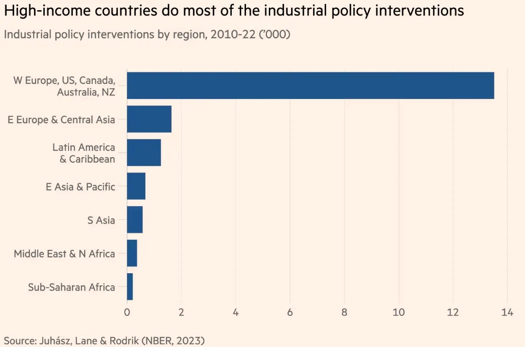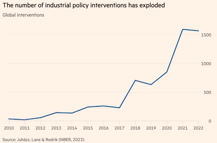 摘要:6月19日,《金融時報》發(fā)布首席經(jīng)濟評論員馬丁·沃爾夫(MARTIN WOLF)撰寫的題為《如何不盲目制定產(chǎn)業(yè)政策》的評論文章,批判了特朗普和拜登政府實施的產(chǎn)業(yè)政策,表示政客們應該承認,在充滿猜疑、保護主義和干涉主義的新時代,可能會損失多少。文章建議,盡管意識形態(tài)向民族主義和干預主義的根本轉變很難遏制,但是實施產(chǎn)業(yè)政策最明智的方式是盡可能精準地針對已發(fā)現(xiàn)的問題,同時盡量減少對國際合作、貿易開放和國內經(jīng)濟表現(xiàn)的破壞性副作用。 產(chǎn)業(yè)政策再次成為政府干預的強大動力。世界許多地方都是如此。但最引人注目的轉變發(fā)生在美國。羅納德·里根宣稱: “英語中最可怕的九個字是:我是政府派來的,我來幫忙。”如今,拜登政府正在熱情地“提供幫助”。唐納德·特朗普也是一個干涉主義者,不同之處在于,他的幫助方式是提高關稅。鑒于美國歷史上作為開放世界經(jīng)濟的倡導者的角色,這種轉變意義重大。 有證據(jù)表明,產(chǎn)業(yè)政策作為一種理念和實踐都變得更加普遍。國際貨幣基金組織去年 1 月發(fā)布的《產(chǎn)業(yè)政策回歸數(shù)據(jù)》顯示,過去十年,商業(yè)媒體中對產(chǎn)業(yè)政策的提及顯著增加。美國國家經(jīng)濟研究局發(fā)表的一篇關于《產(chǎn)業(yè)政策的新經(jīng)濟學》的論文由雷卡·尤哈斯、內森·萊恩和丹尼·羅德里克共同撰寫,論文顯示,全球產(chǎn)業(yè)政策干預措施急劇增加,從2017年的228項增加到2022年的1568項——主要是在高收入國家(可能是因為它們有更多的財政空間)。這也讓世界其他國家指責它們虛偽。(見圖1) 圖1 產(chǎn)業(yè)政策的重要性急劇上升 經(jīng)濟學家認為,這種干預有三個合理理由。第一個理由涉及“外部性”,即企業(yè)提供的無償利益。最明顯的外部性來自工人和其他企業(yè)從中學到的東西。此外還存在國家安全和其他社會外部性。第二個理由涉及協(xié)調和集聚失敗:因此,如果多家企業(yè)聯(lián)合起來創(chuàng)業(yè),它們可能會生存下來,但如果單獨創(chuàng)業(yè),可能沒有一家企業(yè)能夠生存下去。最后一個理由涉及公共產(chǎn)品的供應,尤其是特定地點的公共產(chǎn)品,如基礎設施。請注意,至關重要的是,這些都不是保護的理由。正如我上周指出的那樣,保護不是實現(xiàn)這些更廣泛的社會目標的糟糕方式。 如果產(chǎn)業(yè)政策能夠將經(jīng)濟結構朝著有利的方向改變,那么它就是有效的。不幸的是,這種嘗試可能會失敗,原因眾所周知。缺乏信息是其中之一。被一系列特殊利益集團控制是另一個原因。因此,政府可能無法挑選出贏家,而輸家卻可能成功挑選出政府。擺在桌面上的錢越多,后者就越有可能成真。 圖2 實施產(chǎn)業(yè)政策依據(jù)不同的理由 然而,產(chǎn)業(yè)政策是可以奏效的。在2021年彼得森國際經(jīng)濟研究所的一份出版物中,加里·赫夫鮑爾 (Gary Hufbauer) 和 鄭惠珍(音譯)(Euijin Jung)認為“最突出的成功是美國技術資助機構 DARPA”。因此,成功的創(chuàng)新政策是可能的。基于地點的區(qū)域政策有時也奏效。 但失敗并不是唯一的風險,成功也是如此。產(chǎn)業(yè)政策有可能引發(fā)國際報復。韓國利用保護國內市場作為補貼出口的間接方式,從而創(chuàng)造了成功的新產(chǎn)業(yè)。但它是一個受美國保護的小國。對于大國來說,必須考慮國際影響。美國和歐盟近期針對中國清潔能源技術的快速發(fā)展出臺了系列加稅制裁和反補貼政策,對經(jīng)濟超級大國之間的關系造成了不利影響。 圖3 產(chǎn)業(yè)政策影響一系列關鍵技術和行業(yè)部門 如今,最引人注目的新產(chǎn)業(yè)政策是拜登政府的產(chǎn)業(yè)政策。德克薩斯大學奧斯汀分校的激進經(jīng)濟學家詹姆斯·K·加爾布雷斯在分析中指出,“幾十年來,美國首次擁有了一項看似合理的產(chǎn)業(yè)政策模擬”。但這不是真的:因此,“美國政府已經(jīng)失去了在技術和相關科學前沿集中果斷努力的能力”。拜登的《通脹削減法案》有多個目標,從促進本地制造到降低排放。這是有問題的。加爾布雷斯希望美國變得更激進地干預。如果美國要干預,就必須更具戰(zhàn)略性。真的可以嗎? 那么,應該如何評價美國產(chǎn)業(yè)政策轉變?特朗普右翼勢力又希望恢復19世紀末和20世紀初的高關稅。 圖4 產(chǎn)業(yè)政策干預措施數(shù)量呈爆炸式攀升 答案是,現(xiàn)在至少有三種兩黨立場:懷念制造業(yè)、對抗中國崛起、對美國自己制定的國際規(guī)則漠不關心。這是一個新世界,國際貿易秩序可能很快就會達到臨界點。實施產(chǎn)業(yè)政策最明智的方式是盡可能精準地針對已發(fā)現(xiàn)的問題,同時盡量減少對國際合作、貿易開放和國內經(jīng)濟表現(xiàn)的破壞性副作用。遺憾的是,這種情況不太可能會結束,就像1930年代的情況一樣。正如以前經(jīng)常發(fā)生的那樣,意識形態(tài)向民族主義和干預主義方法的根本轉變確實很難遏制。 圖5 高收入國家實施了大部分產(chǎn)業(yè)干預政策 戴夫·帕特爾、賈斯汀·桑德弗和阿爾文德·蘇布拉馬尼安在《外交事務》中指出,隨著“超全球化”的消亡,新興國家和發(fā)展中國家與高收入經(jīng)濟體之間平均實際