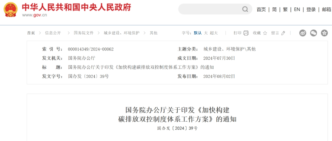 錨定減排目標(biāo) 構(gòu)筑制度體系 碳達(dá)峰碳中和工作邁入新階段 ——《加快構(gòu)建碳排放雙控制度體系工作方案》專家解讀 張英健 木其堅 近日,國務(wù)院辦公廳印發(fā)了《加快構(gòu)建碳排放雙控制度體系工作方案》(國辦發(fā)〔2024〕39號,以下簡稱《方案》)。《方案》貫徹落實黨的二十大和二十屆二中、三中全會精神,對構(gòu)建碳排放雙控制度體系重點任務(wù)作出系統(tǒng)部署,對于建立能耗雙控向碳排放雙控全面轉(zhuǎn)型新機制、積極穩(wěn)妥推進碳達(dá)峰碳中和、促進經(jīng)濟社會發(fā)展全面綠色轉(zhuǎn)型具有重要意義。 一、碳排放雙控制度是實現(xiàn)碳達(dá)峰碳中和目標(biāo)的關(guān)鍵一招 近年來,各地區(qū)、各部門堅持以習(xí)近平新時代中國特色社會主義思想為指導(dǎo),深入貫徹落實習(xí)近平總書記關(guān)于碳達(dá)峰碳中和的重要論述和指示批示精神,推動“雙碳”工作取得良好開局和積極成效。黨中央、國務(wù)院印發(fā)《關(guān)于完整準(zhǔn)確全面貫徹新發(fā)展理念做好碳達(dá)峰碳中和工作的意見》,國務(wù)院發(fā)布《2030年前碳達(dá)峰行動方案》,各有關(guān)部門出臺重點領(lǐng)域、重點行業(yè)實施方案和支撐保障方案,并系統(tǒng)部署了加快建立統(tǒng)一規(guī)范的碳排放統(tǒng)計核算體系、綠色低碳先進技術(shù)示范工程、產(chǎn)品碳足跡管理體系等一系列重大政策措施,碳達(dá)峰碳中和“1+N”政策體系構(gòu)建完成,為碳達(dá)峰碳中和目標(biāo)的實現(xiàn)奠定了堅實的制度基礎(chǔ)。 同時,我國碳達(dá)峰碳中和工作仍面臨嚴(yán)峻挑戰(zhàn)。受新冠疫情和國內(nèi)外多重因素影響,“十四五”規(guī)劃《綱要》確定的節(jié)能降碳約束性指標(biāo)完成情況不及預(yù)期。在“十四五”“十五五”交接的關(guān)鍵節(jié)點,《方案》首次全面完整闡述了碳排放雙控的制度架構(gòu),及時回答了碳排放雙控“是什么”和“怎么辦”的問題。《方案》的出臺,標(biāo)志著能耗雙控向碳排放雙控全面轉(zhuǎn)型取得重大進展,為當(dāng)前和今后一段時間的“雙碳”工作明確了工作主線、指明了前進方向、謀劃了路徑措施,對推進“雙碳”工作具有重大意義。 二、凝聚各方力量,筑牢碳排放雙控制度的四梁八柱 習(xí)近平總書記強調(diào),“實現(xiàn)‘雙碳’目標(biāo)是一場廣泛而深刻的變革,不是輕輕松松就能實現(xiàn)的”。面對紛繁復(fù)雜的國際國內(nèi)形勢,面對新一輪科技革命和產(chǎn)業(yè)變革,更需要平衡好發(fā)展和減排、整體和局部、長遠(yuǎn)目標(biāo)和短期目標(biāo)、政府和市場間的關(guān)系。《方案》立足當(dāng)前實際,以建立健全地方碳考核、行業(yè)碳管控、企業(yè)碳管理、項目碳評價、產(chǎn)品碳足跡等政策制度和管理機制為重點,系統(tǒng)部署了六項重點任務(wù)。 在國家層面,將碳排放納入總體規(guī)劃。這是將碳達(dá)峰、碳中和目標(biāo)任務(wù)全面融入經(jīng)濟社會發(fā)展中長期規(guī)劃的必然要求。“十五五”時期,將碳排放強度降低作為國民經(jīng)濟和社會發(fā)展約束性目標(biāo),合理確定五年規(guī)劃期碳排放目標(biāo),并對重點任務(wù)和重大工程進行統(tǒng)籌部署,開展碳排放總量核算。 在地方層面,建立碳排放目標(biāo)評價考核制度。要實現(xiàn)“雙碳”目標(biāo),必須堅持全國一盤棋,而“指揮棒”就是區(qū)域的碳排放目標(biāo)考核制度。在合理分解指標(biāo)的基礎(chǔ)上,制定出臺碳達(dá)峰碳中和綜合評價考核辦法,統(tǒng)籌建立評價考核指標(biāo)體系。推動省市兩級建立碳排放預(yù)算管理制度,強化對區(qū)域碳排放的管理和調(diào)控能力。 在重點行業(yè)層面,建立碳排放預(yù)警管控機制。電力、鋼鐵、有色、建材、石化、化工等工業(yè)行業(yè)和城鄉(xiāng)建設(shè)、交通運輸?shù)阮I(lǐng)域是碳減排的重點。要合理劃定行業(yè)碳減排的范圍,摸清行業(yè)領(lǐng)域碳排放底數(shù)和減排潛力,常態(tài)化開展碳排放監(jiān)測分析預(yù)警,并視情采取管控措施。 在企業(yè)層面,強化節(jié)能降碳管理制度。重點用能和碳排放單位是碳排放管理的“牛鼻子”。要制定出臺重點用能和碳排放單位節(jié)能降碳管理辦法,將碳排放管控要求納入現(xiàn)行重點用能單位管理制度。充分發(fā)揮市場機制調(diào)控作用,擴大全國碳排放權(quán)交易市場覆蓋范圍,探索配額有償分配機制;健全全國溫室氣體自愿減排交易市場,推動更大范圍減排;完善綠證交易市場,促進綠色電力消費。 在項目層面,開展固定資產(chǎn)投資項目碳排放評價。以重大項目為重點,結(jié)合碳預(yù)算制度,把好碳排放“入口關(guān)”。將碳排放評價有關(guān)要求納入固定資產(chǎn)投資項目節(jié)能審查,對項目用能和碳排放情況開展綜合評價,制定重點行業(yè)建設(shè)項目溫室氣體排放環(huán)境影響評價技術(shù)規(guī)范。 在產(chǎn)品層面,建立產(chǎn)品碳足跡管理體系。碳足跡管理是連接國際與國內(nèi)、政府與企業(yè)的重要發(fā)力點。要加快制定產(chǎn)品碳足跡規(guī)則標(biāo)準(zhǔn),按照急用先行原則制定一批碳足跡核算規(guī)則標(biāo)準(zhǔn)。加強碳足跡背景數(shù)