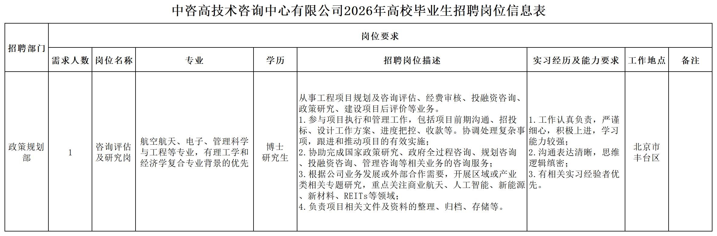 中國國際工程咨詢有限公司所屬企業(yè)2026年校園招聘公告 | ||||
