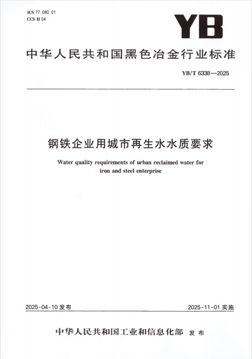 中國國際工程咨詢有限公司參與編制的行業(yè)標(biāo)準YB/T 6338-2025《鋼鐵企業(yè)用城市再生水水質(zhì)要求》于2025年11月1日正式實施。(參編人員:張建紅) 本標(biāo)準由工業(yè)和信息化部鋼鐵行業(yè)節(jié)水標(biāo)準化工作組提出并歸口。 本標(biāo)準規(guī)定了作為鋼鐵企業(yè)工業(yè)用水的再生水的水質(zhì)要求、監(jiān)測與檢測要求、其他要求。 本標(biāo)準適用于以城市污水再生水為水源,作為鋼鐵企業(yè)工業(yè)用水的下列范圍:直流冷卻水、洗滌用水、敞開式循環(huán)冷卻水系統(tǒng)補充水、鍋爐補給水原水、工藝與產(chǎn)品用水。 | |||||