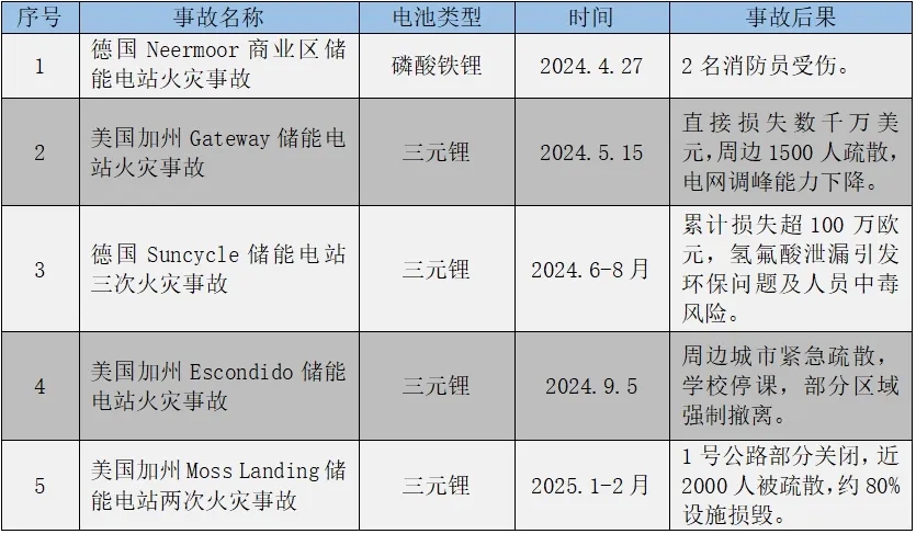 我國電化學儲能電站 安全風險分析及管控建議 嚴超 黃文 摘要:電化學儲能電站是我國建設新型電力系統、實現碳達峰碳中和的重要支撐。然而,其存在火災甚至爆炸的風險。全球范圍內電化學儲能電站火災事故頻發,這警示我國需科學管控電化學儲能電站的安全風險。本文介紹電化學儲能電站的安全難題,分析我國電化學儲能電站存在的安全風險,進一步探討其安全風險管控過程中面臨的困難與挑戰,提出科學管控安全風險的對策建議,旨在更好地保障我國電化學儲能電站的安全,推動新型電力系統建設以及碳達峰碳中和目標的實現。 電化學儲能包括鋰離子、鉛酸(碳)、液流、鈉硫等不同類型的電池技術,當前主要以磷酸鐵鋰和三元鋰電池為主。電化學儲能電站由數萬至數十萬個電池組成,具有布局靈活、響應速度快、調節精度高等優勢,在我國建設新型電力系統、實現碳達峰碳中和目標的進程中發揮著重要支撐作用。根據國家能源局發布數據,截至2024年底,我國新型儲能裝機累計達到7376萬kW,較2023年底增長超過130%,其中95%以上為鋰離子電池儲能,我國電化學儲能已進入規模化發展階段。 磷酸鐵鋰和三元鋰電池本身存在一定的熱失控概率,這種熱失控可能導致電化學儲能電站發生火災甚至爆炸,但磷酸鐵鋰相較三元鋰的安全性更好。全球范圍內,電化學儲能電站火災事故屢見不鮮,不僅對公共安全構成嚴重威脅,還可能影響碳達峰碳中和目標的實現進程。這些事故警示我國在新型儲能規模化發展過程中,必須科學謀劃并有效管控電化學儲能電站的安全風險,以確保新型電力系統建設和碳達峰碳中和目標的安全有序推進。 本文從事故概率和事故影響兩個方面介紹電化學儲能電站的安全難題,在此基礎上,結合我國電化學儲能電站發展實際情況,分析其面臨的“基數增加”和“老舊隱患”風險,探討我國電化學儲能電站安全風險管控在設計規范、監測預警和消防策略方面面臨的挑戰,從加快本征安全研究、加強規范制定、升級監測預警和完善消防策略等方面提出對策建議。 一、電化學儲能電站安全難題介紹 (一)電化學儲能電站事故概率 電化學儲能電池在過充、過放、環流、內部短路、電氣故障、機械碰撞等多種故障情況下,電芯溫度容易升高,進而引發熱失控,最終導致火災。電芯燃燒時會釋放出可燃和有毒氣體,可能導致爆炸[1]。大型儲能電站(100兆瓦以上)通常由數十萬至百萬個電芯組成,這使得電芯出現故障的概率大幅增加。目前,全球范圍內已發生多起電化學儲能電站火災事故,主要集中在韓國和美國,中國、澳大利亞、德國、法國等地也有此類事故發生。目前單體電池的火災概率約在10-3量級,根據孫金華院士2022年的統計,全球每座儲能電站每年發生火災的概率約在2×10-3~3×10-3。截至2024年底,我國已投運的電化學儲能電站達1473座[2],按照這個數據估算,每年約有2~5座電化學儲能電站可能發生火災事故。表1統計了我國近2年公開記錄的主要電化學儲能電站事故,考慮到部分事故可能未被公開,事故統計數據可能較真實情況有所低估。 表1 近2年我國主要公開電化學儲能電站火災事故 (二)電化學儲能電站事故影響 在全球范圍內,早期曾發生多起造成人員傷亡的嚴重電化學儲能電站燃爆事故(見表2),這些事故引發了人們對公共安全的高度重視。其中,2021年我國北京集美大紅門儲能電站發生爆炸事故,造成2名消防員死亡;2024年韓國京畿道電池廠火災引發爆炸事故,導致23人死亡。在電化學儲能火災處置不當的情況下,極易發生燃爆,從而引發大規模事故。2024年以來,全球范圍內電化學儲能電站火災事故持續不斷(見表3)。例如,2024年5月美國加利福尼亞州Gateway儲能電站(250兆瓦/250兆瓦時)發生火災事故,電站多次復燃,火災持續約11天,釋放出的大量有毒有害氣體造成嚴重空氣污染,迫使周邊地區1500多名居民緊急疏散撤離,滅火時產生的大量水漬會造成環境污染。電站設備及建筑物損毀造成數千萬美元經濟損失,儲能設施停運使電網調峰能力下降,引發當地社區對電化學儲能電站部署的強烈反對,火災發生后圣迭戈縣明確禁止在住宅區部署儲能設施。 表2 全球范圍造成人員傷亡的主要電化學儲能電站事故 表3 2024年以來全球主要電化學儲能電站火災事故 二、我國電化學儲能電站安全風險分析 根據工程風險評估理論[3],電化學儲能電站的安全風險是電站數量、事故概率和事故影響三者的乘積。其中,事故概率受電池本體質量、集成設計、氣象條件等多種因素制約,事故影響涵蓋人身安全、環境污染、財物損失等多方面。 (一)“基數增加”風險 截至2024年,全國投運新型儲能總裝機達到7376萬千瓦/1.68億千瓦時,約為“十三五”末期的20倍,且95%以上為電化學儲能。然而,其僅占全國電源總裝機的2.20%,占新能源總裝機的5.23%,與新型電力系統調節能力建設的需求相比,差距較大,增長潛力巨大[4]。據中關村儲能產業聯盟估計,到2030年全國電化學儲能裝機將超過2億千瓦[5]。隨著電站基數的增大,安全風險也隨之增加。另一方面,2024年國內儲能系統(2小時)中標均價相較2023年下降了43%。雖然價格并不絕對等同于質量,但在強制安全設計規范和安全追責機制仍在完善,且行業內卷導致企業面臨較大經營壓力的情況下,部分企業可能會通過降低設計標準和部分零件質量來減少成本,