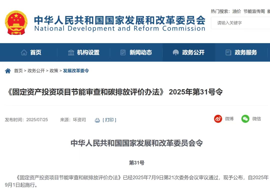 加強(qiáng)固定資產(chǎn)投資項(xiàng)目節(jié)能審查和碳排放評價是有力有效遏制“兩高”項(xiàng)目盲目上馬、推動綠色低碳高質(zhì)量發(fā)展的一項(xiàng)重要舉措。近日,國家發(fā)展改革委頒布《固定資產(chǎn)投資項(xiàng)目節(jié)能審查和碳排放評價辦法》(國家發(fā)展和改革委員會令2025年第31號,以下簡稱《辦法》),這是適應(yīng)新形勢新任務(wù)新要求、扎實(shí)做好節(jié)能降碳工作的重要制度安排,對建立能耗雙控向碳排放雙控全面轉(zhuǎn)型新機(jī)制、積極穩(wěn)妥推進(jìn)碳達(dá)峰碳中和具有重要意義。