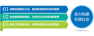 在國家全面建設小康社會的進程中積極貢獻我們的力量,在國家經濟社會發展戰略的制定和實施中不斷奉獻我們的智慧,在國家投資決策上努力提供科學的依據,以凝聚思想、優質高效的咨詢成果助力社會民生事業,用心做好服務,爭做工程咨詢行業的優秀企業公民。